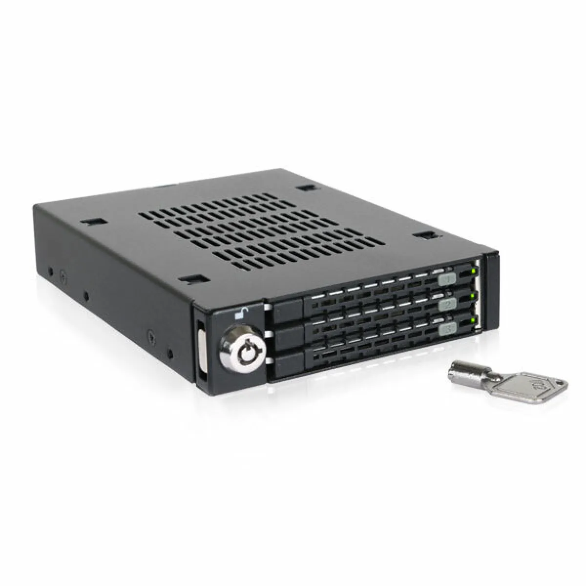 Châssis entièrement métallique très robuste Supporte 3 disques 2.5' SATA/SAS (HDD ou SSD) dans une baie 3.5' Rack compatible avec disques durs / SSD de 2.5' avec hauteur de 7 mm Prise en ch