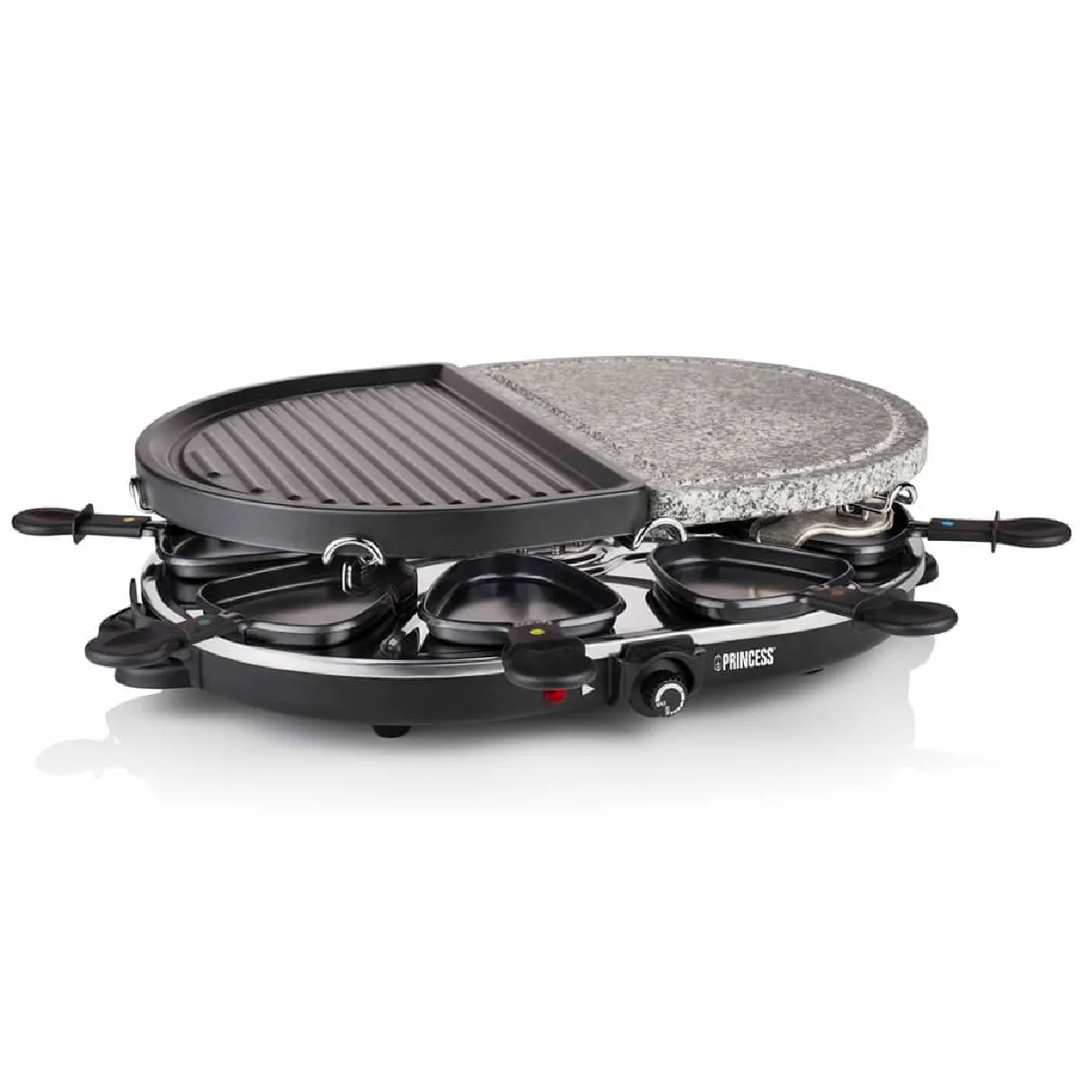 Appareil à raclette 8 personnes 1200w + pierre à griller + gril - 162710-01-001 - PRINCESS
