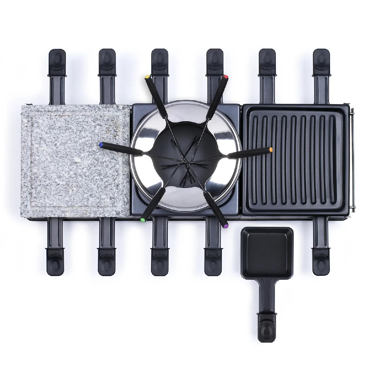 Appareil à raclette/fondue - 12 personnes - 1650W - Multi-usages - Noir
