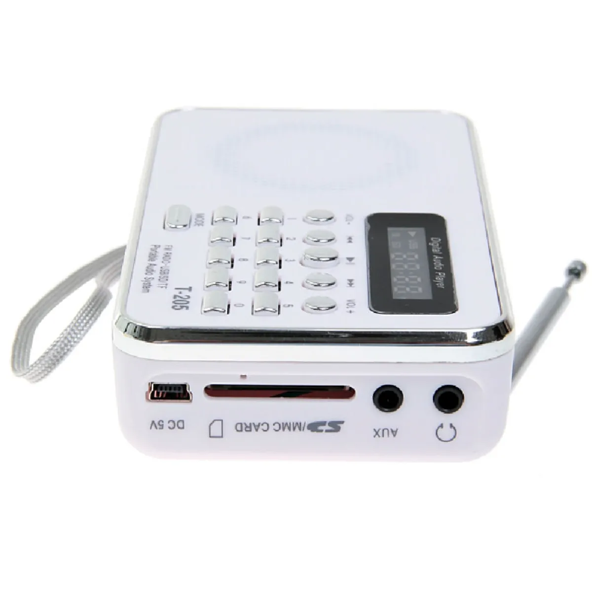 Pensée pour la mobilité, la structure de 17 cm x 13 cm x 12.7 cm et le poids de 209 g offrent une bonne portabilité lors des déplacements. Un port USB et une entrée auxiliaire ouvrent des options filaires avec des sources compatibles. La batterie lithium rechargeable soutient l'écoute au quotidien, tandis que la finition blanche reste discrète dans divers espaces. Sans projecteur lumineux ni fonctions réseau, l'ensemble se concentre sur l'essentiel : radio FM et fichiers locaux, pour une utilisation fiable à la maison, au bureau ou en extérieur.