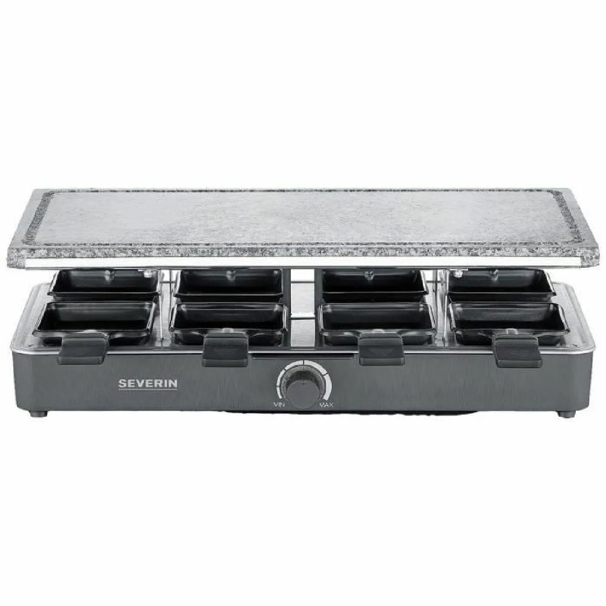 Appareil à raclette avec pierre de gril - 8 poêlons - Noir