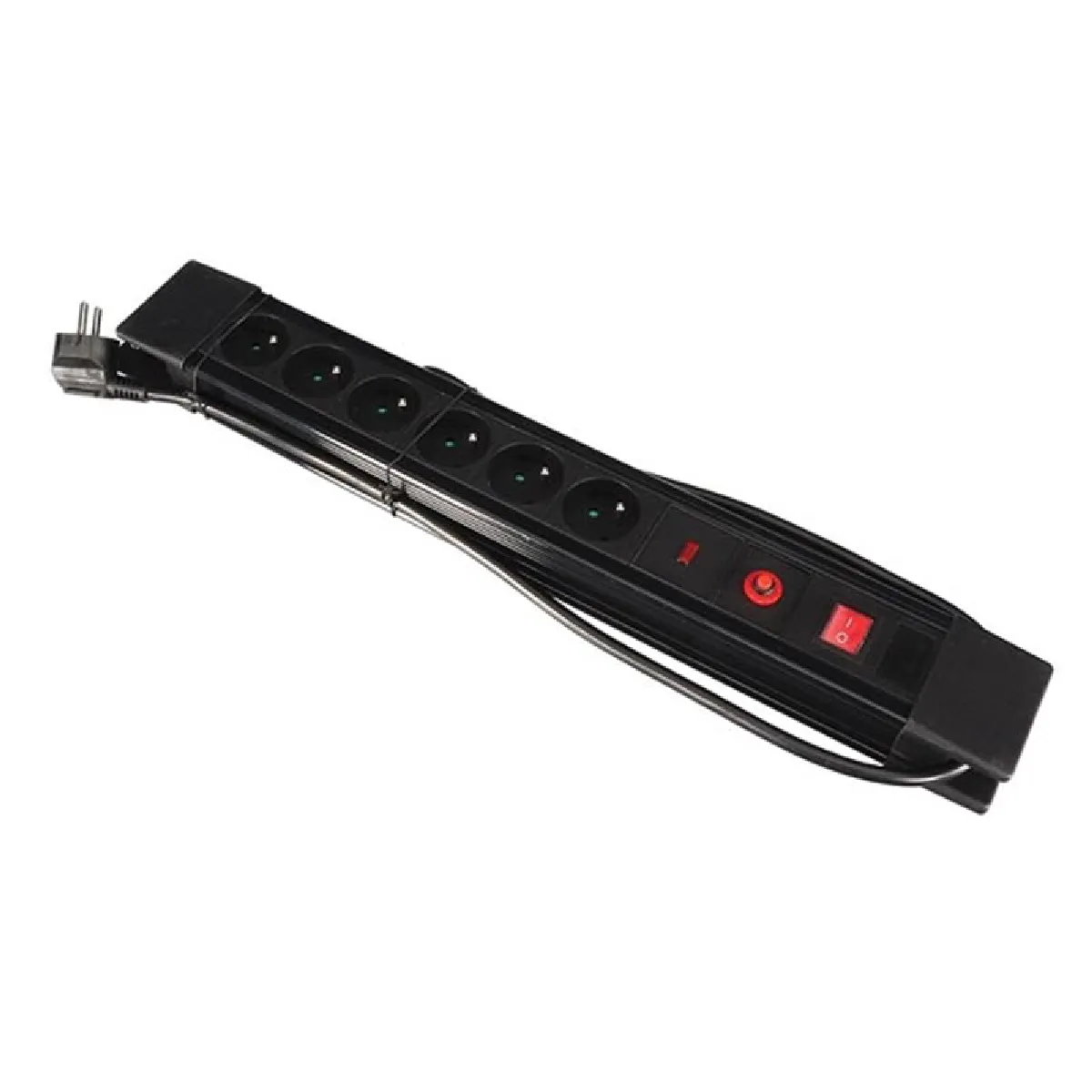 - 6 prises avec terre de type E et interrupteur on/off DP illuminé