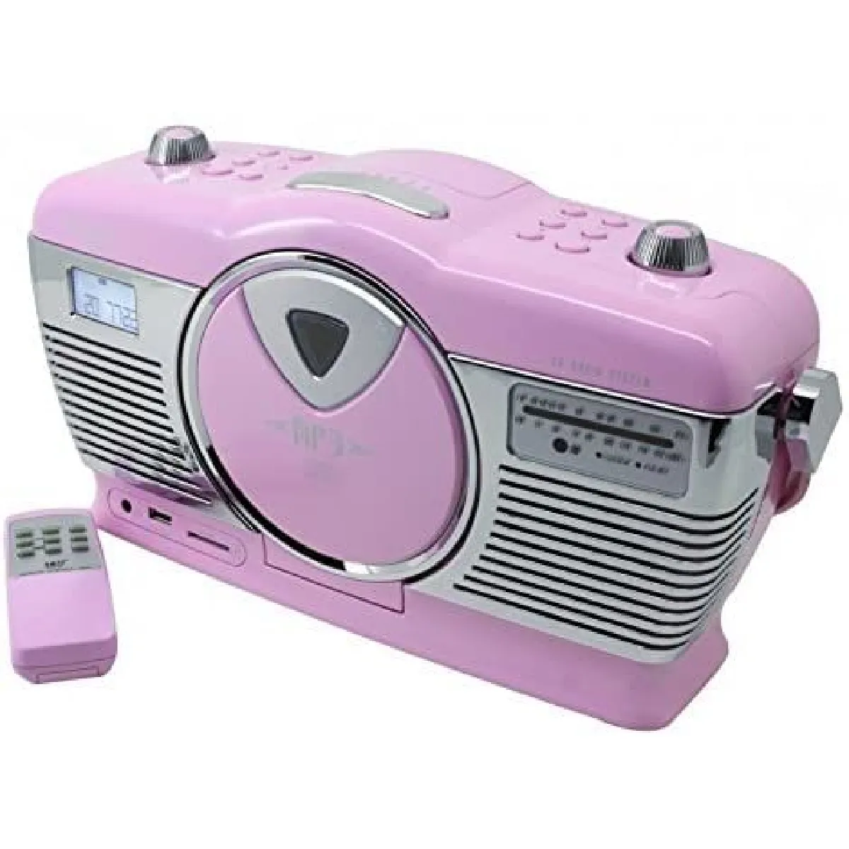 Radio-CD portable FM stéréo - USB et MP3 - Lecteur cartes SD - Écran LCD - Télécommande - Réveil - Prise casque - Alimentation secteur ou piles