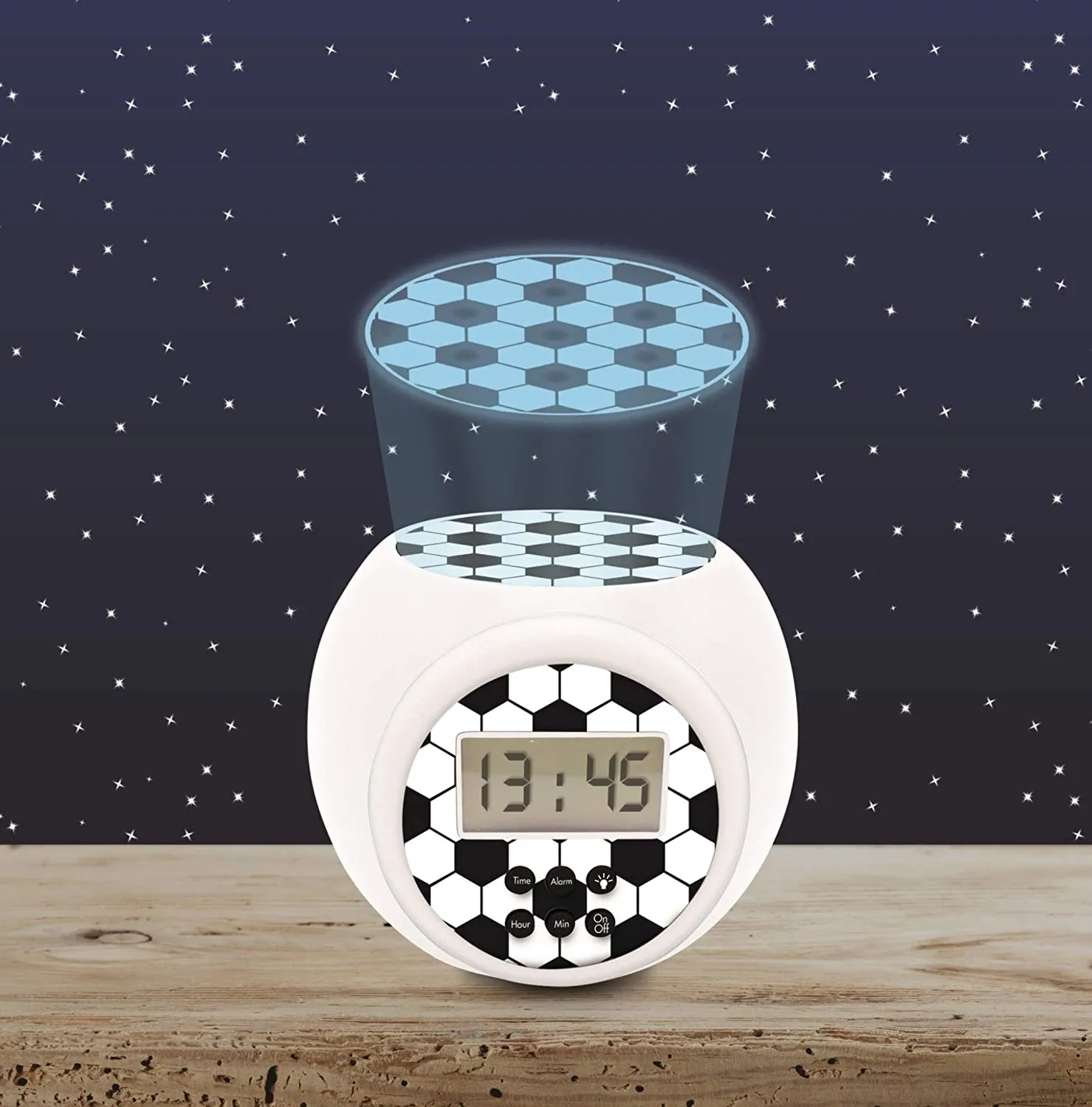 Réveil projecteur enfant football avec veilleuse et alarmes pratiques