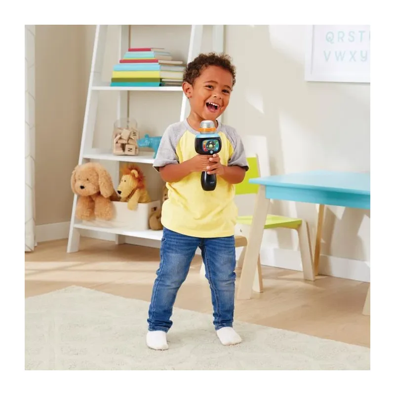 Idéal pour initier les plus jeunes au chant, ce micro ludique propose une connexion sans fil pour écouter ses chansons et chanter par-dessus. Les enfants profitent d'effets lumineux synchronisés avec la musique pour une ambiance de mini scène à la maison. La fonction dédiée supprime les paroles des morceaux compatibles afin de laisser la place au jeune chanteur. Des effets de voix et sons amusants stimulent l'imagination tout en rendant chaque session différente. Conçu en plastique et alimenté à piles, il accompagne facilement les moments de jeu. Les haut-parleurs intégrés offrent une écoute immédiate sans équipement supplémentaire.