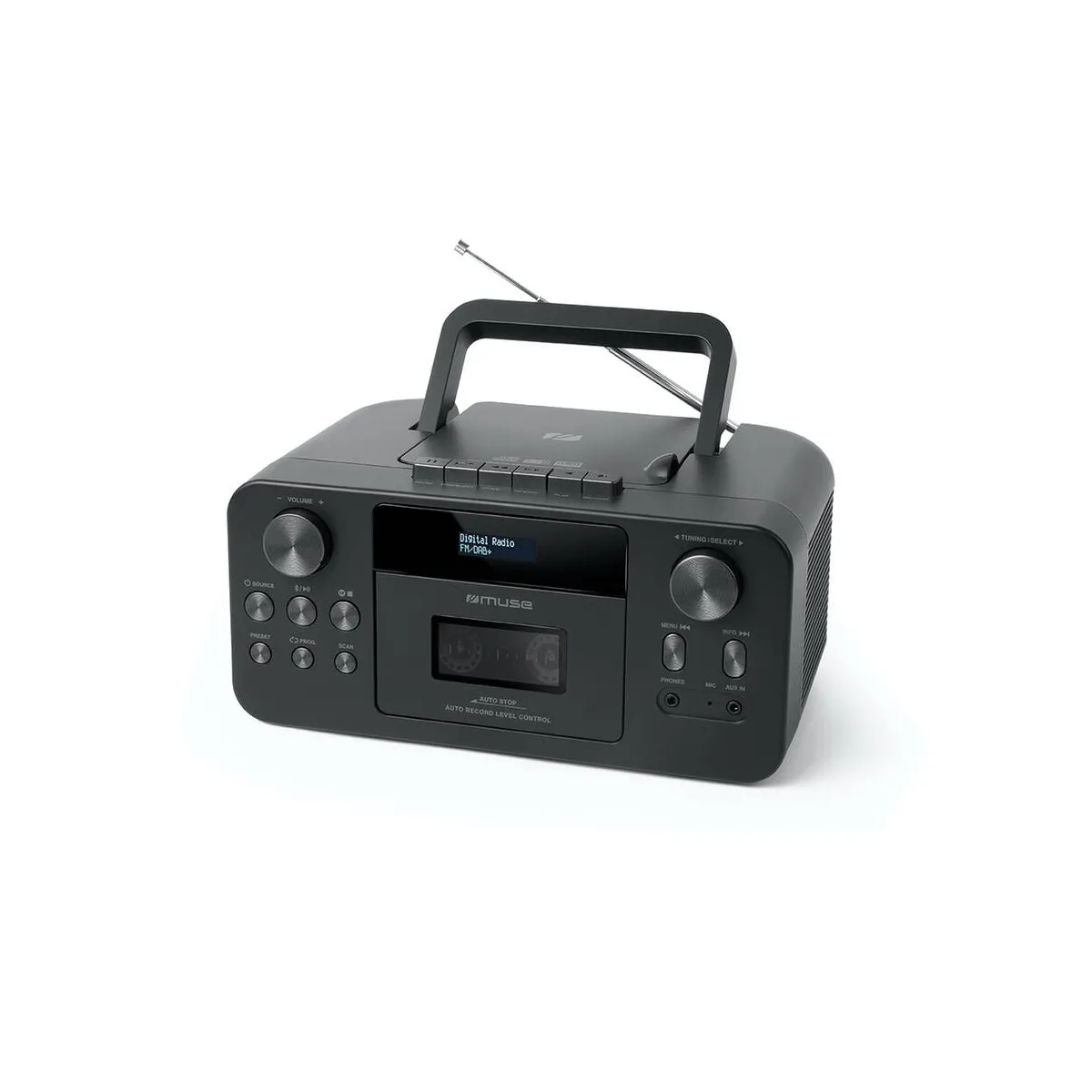 Radio-cassette CD DAB/DAB+ avec Bluetooth - écran LCD rétroéclairé - prise casque - entrée auxiliaire - 20 présélections - micro intégré