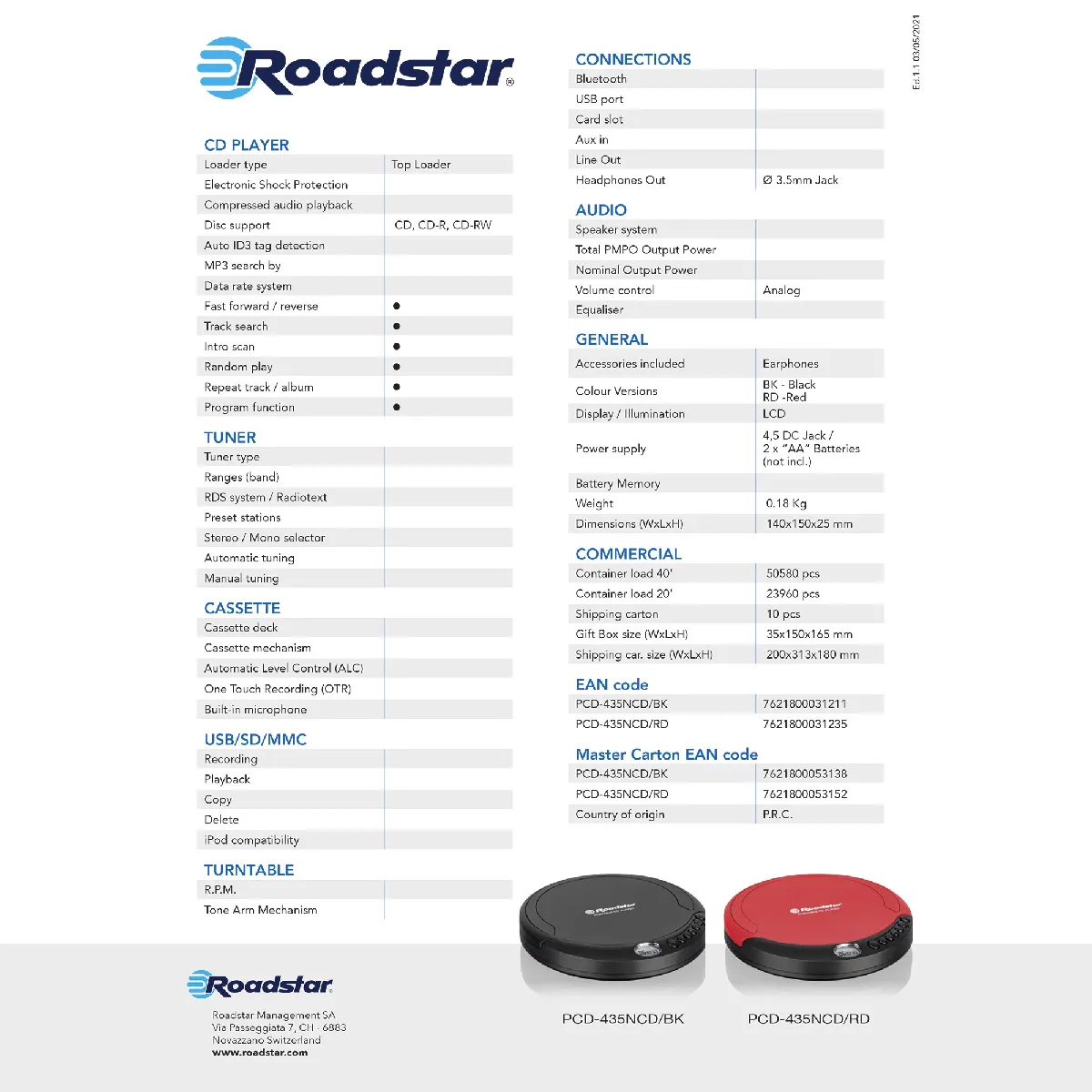 Roadstar PCD-435NCD - Noir |
