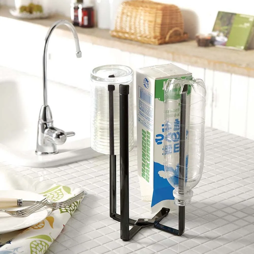 Le design pliant permet un rangement plat dans un tiroir ou un placard sans encombrement. Les éléments en silicone contribuent à la stabilité des articles délicats. Utilisé comme égouttoir à bouteilles et support pour garder de petits sacs ouverts, il facilite les tâches courantes comme le séchage après rinçage ou le remplissage de sachets. Ses dimensions de 12 cm de longueur et 10 cm de largeur s'intègrent aisément sur un rebord d'évier ou un plan de préparation.