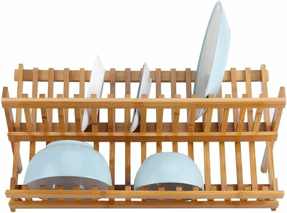 Le système pliable permet un rangement rapide dans un placard ou un tiroir, utile dans les espaces restreints. La surface en bambou est décrite comme non toxique et non bactérienne, apportant une solution fonctionnelle pour l'égouttage après lavage. Avec ses deux rangements superposés pour vaisselle, il convient aux cuisines domestiques et s'adapte aussi aux besoins en déplacement, comme le camping ou le voyage, grâce à sa portabilité.