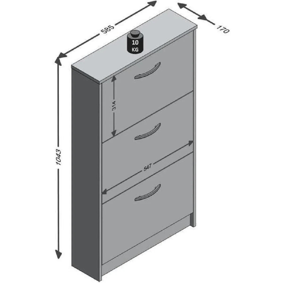 Armoire à chaussures - 3 tiroirs - Aggloméré - Design pratique