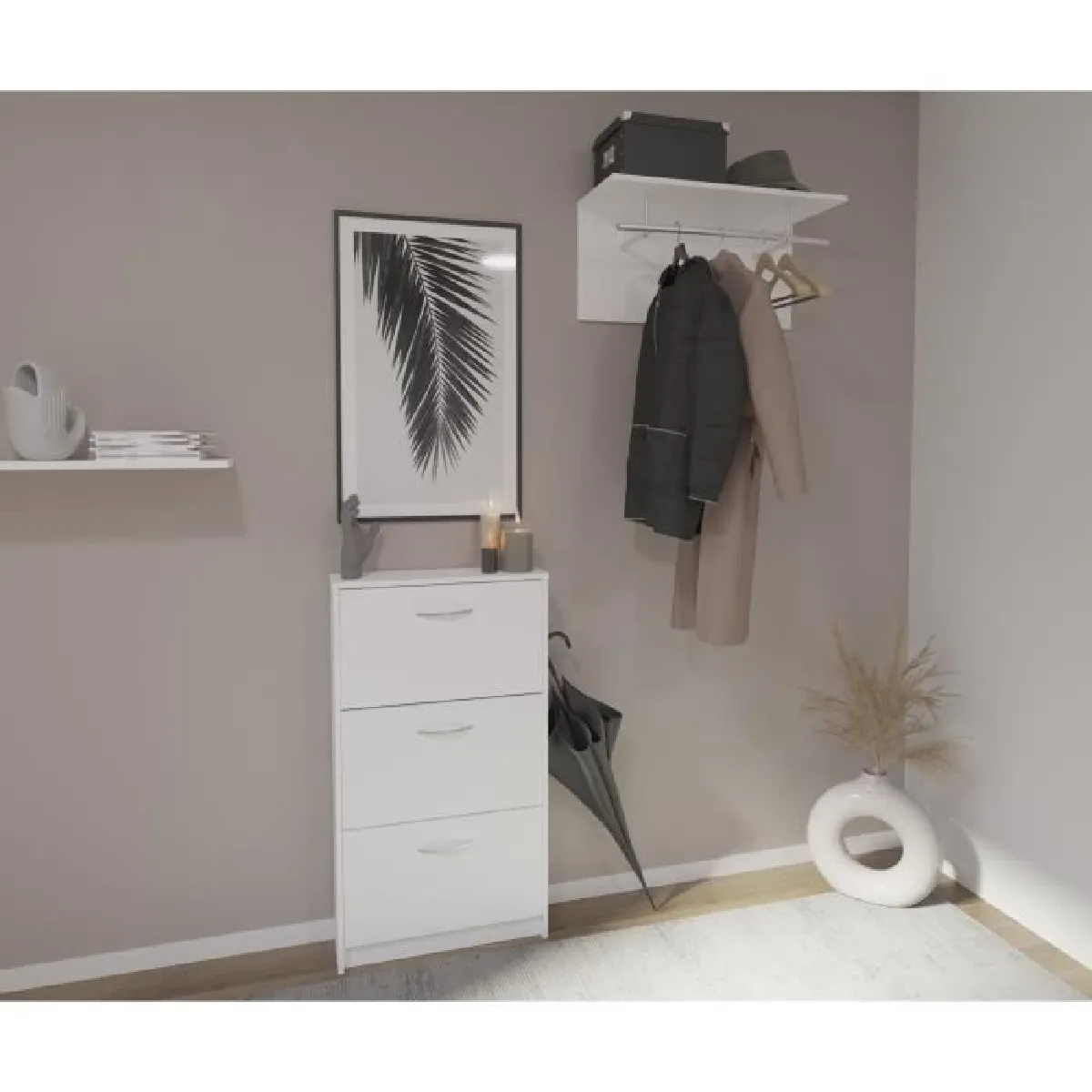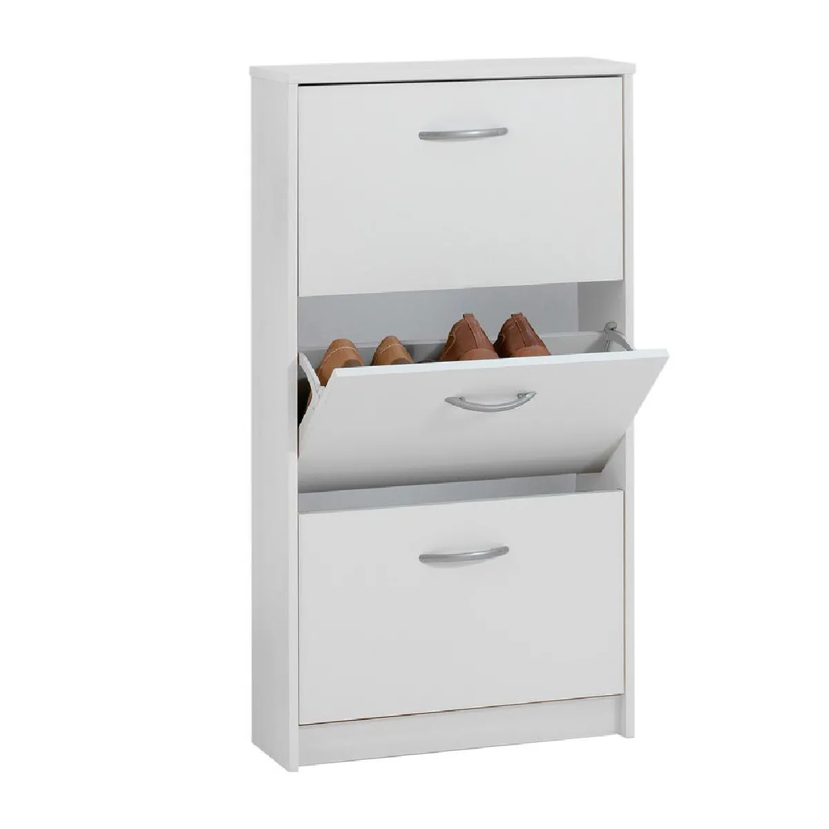 Armoire à chaussures Step à 3 tiroirs, de couleur blanche, réalisée en aggloméré.