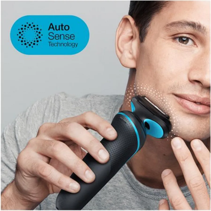Rasoir électrique grille homme - tête flexible 8 directions - AutoSense - tondeuse de précision - utilisation à sec ou sur peau humide - rechargeable