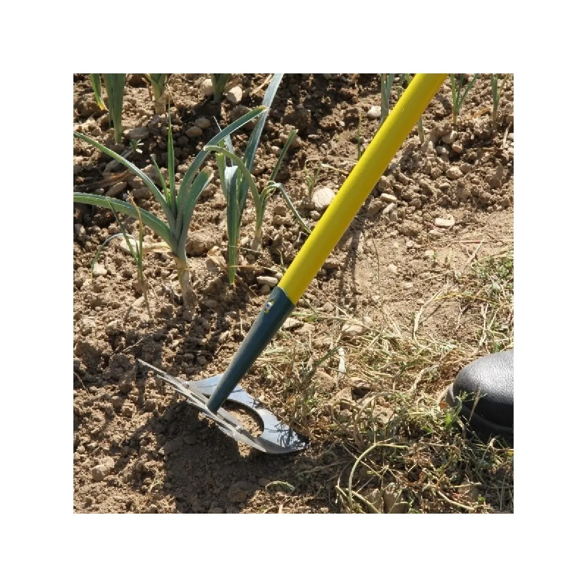 Cette binette NATUROVERT de Leborgne résiste à une utilisation intensive grâce à sa lame trempée (dureté : 38-42 HRC) d’épaisseur 2 mm, affûtée sur 3 côtés, avec douille renforcée. Elle est équipée d’un manche extra-long de 150 cm pour un confort d’utilisation maximal, préservant ainsi le dos de l’utilisateur.Outil 2 en 1 :Une binette et un râteau en un seul outil. Un côté permet de sarcler les mauvaises herbes, 2 faces latérales moins larges sont faites pour casser la croûte du sol, et un côté est cranté pour ramasser les herbes coupées et nivelerStockage aisé :Le manche est percé, facilitant ainsi l’implantation en magasin ainsi que son rangementCaractéristiques :Type de lame : Trempée (dureté 38-42 HRC), affûtée sur 3 côtés, avec douille renforcéeEmmanchement : Douille tubulaireÉpaisseur de lame : 2 mmLongueur de lame : 16 cmLongueur de manche : 150 cmPoids : 1 kgDomaines d'utilisation :Désherbage dans les terres dures, les allées en stabilisé (gore), les chemins, les allées et les sols plans