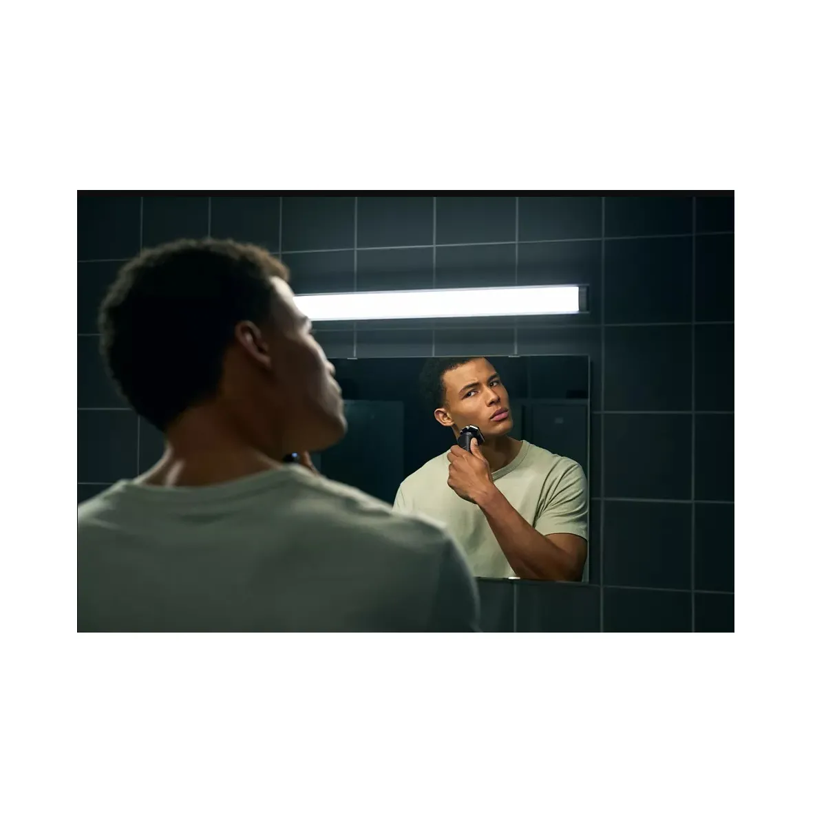 La coupe rapide des lames SteelPrecision et la détection automatique de la densité de barbe via SkinIQ offrent un rasage de près constant, même sur les zones difficiles. Les têtes flexibles à 360° assurent un contact régulier avec la peau pour limiter les passages répétés. L'autonomie sans fil de 60 minutes et la recharge USB-A pratique en 1 heure simplifient l'usage au quotidien, à la maison ou en déplacement. Le système Wet & Dry permet un rasage à sec ou avec mousse, y compris sous la douche pour une routine plus flexible. Une tondeuse de précision rétractable aide à soigner moustache et pattes sans changer d'outil.