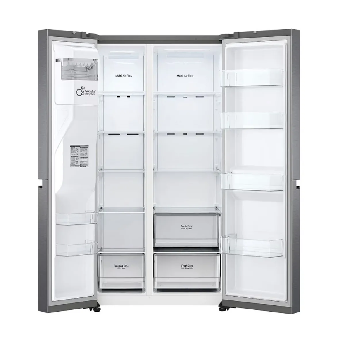 La configuration side-by-side propose 416 l pour le réfrigérateur et 219 l pour le congélateur, avec froid ventilé No Frost sur les deux compartiments pour une température stable et sans givre. La circulation d'air Multi-Air Flow optimise la conservation sur tous les niveaux. Le compresseur Smart Inverter prend en charge l'ajustement précis de la puissance selon la charge, contribuant à un niveau sonore de 36 dB et à une gestion énergétique mesurée. La régulation est électronique, pilotée par un affichage digital intérieur et 6 sondes thermiques pour une réactivité rapide aux ouvertures de porte.