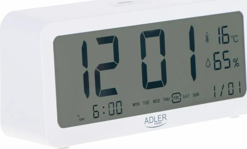 Réveil digital compact en plastique blanc pour usage intérieur