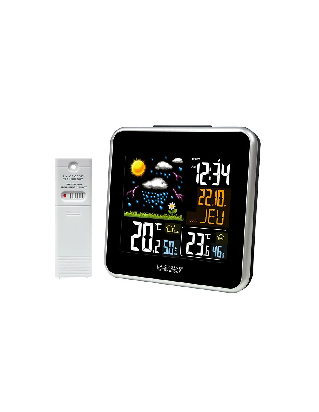 Station météo radio-pilotée avec écran couleur - Température extérieure - Réveil digital - Utilisation intérieur/extérieur - Sans Wi-Fi ni Bluetooth