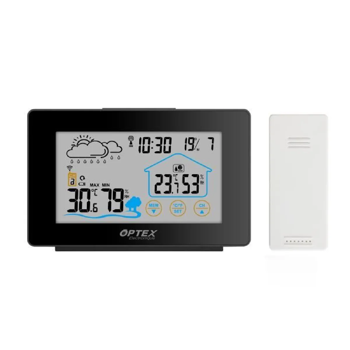 Station météo digitale - Capteur sans fil - Intérieur et extérieur - Écran tactile - Mémoire min/max - Affichage °C/°F - Sans Wi-Fi ni Bluetooth