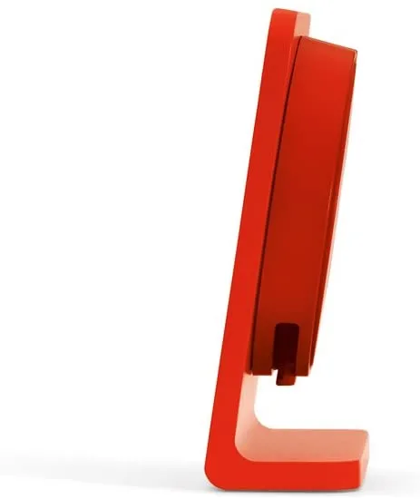 Le boîtier en aluminium robuste et minimaliste s'associe à un verre avant anti-rayures pour préserver la lisibilité dans le temps. Le système à deux sources de courant séparées alimente l'horloge et l'anneau lumineux indépendamment, afin de préserver la fonctionnalité principale. Adapté à l'intérieur, ce réveil analogique compact (10.7 cm de hauteur, 3.4 cm de largeur) s'intègre facilement sur une table de chevet. La finition rouge met en valeur un design épuré et fonctionnel qui se concentre sur l'essentiel.