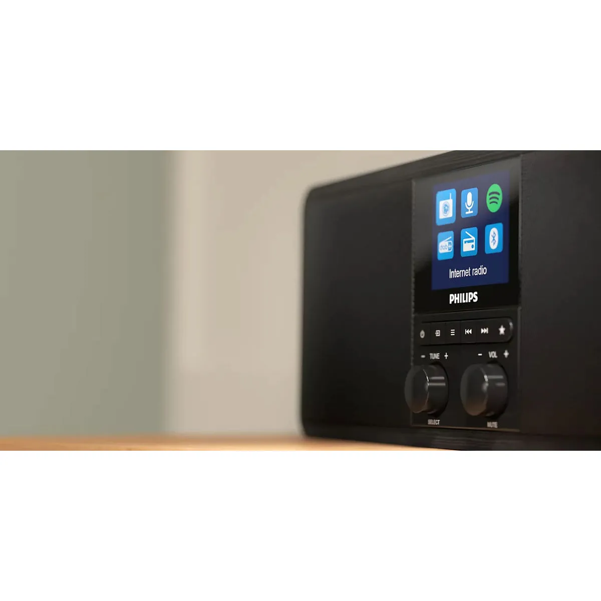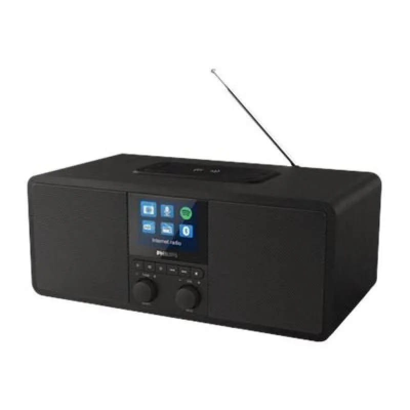 Radio-réveil numérique avec radio Internet, DAB+ et FM - Bluetooth - Spotify Connect - Charge sans fil Qi - Port USB - Double alarme - Écran couleur TFT 2,4"