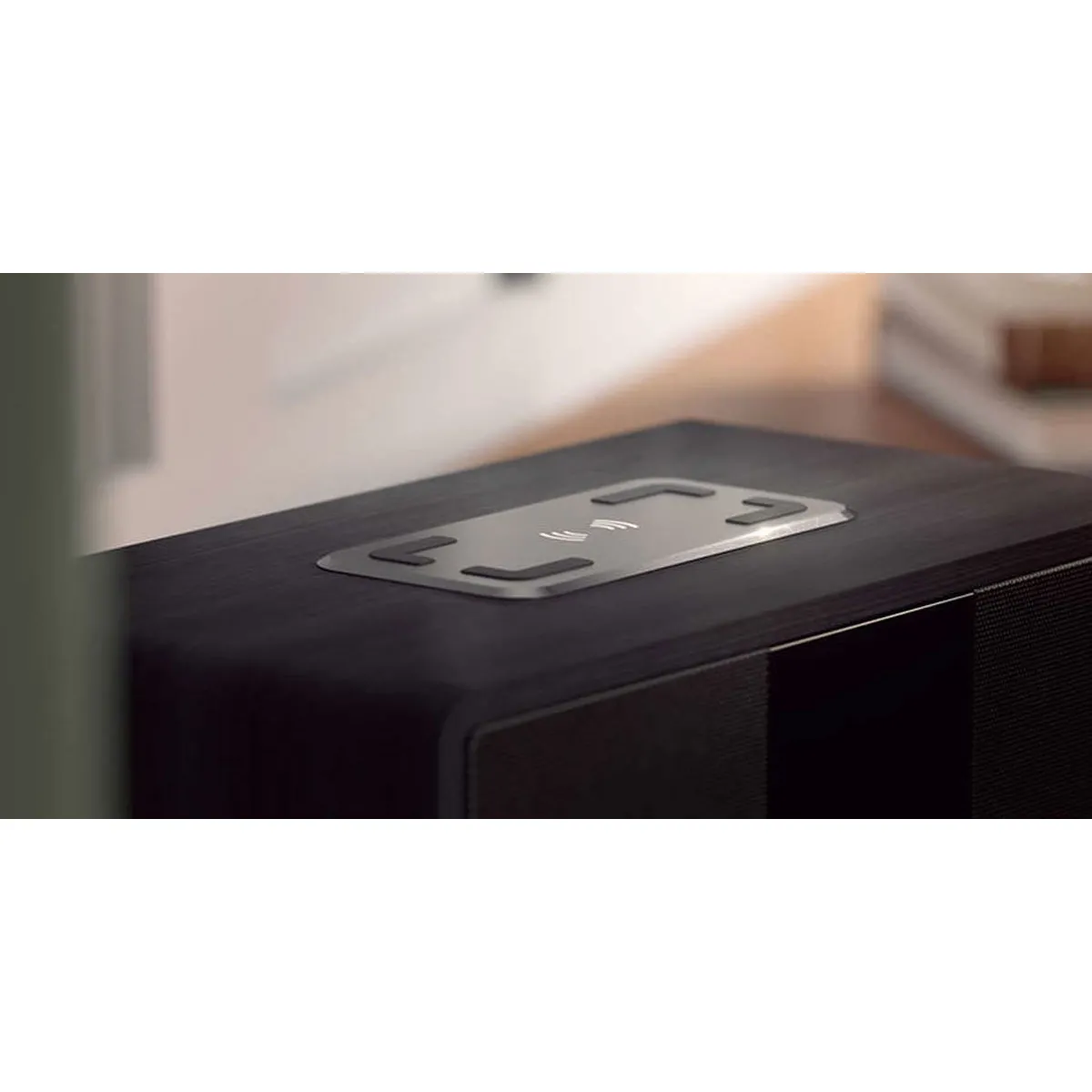 Pour la recharge, la face supérieure intègre un plateau Qi jusqu'à 10 W, complété par un port USB 5 V, 1 A pour les téléphones non compatibles. Le grand écran TFT couleur 2,4" affiche heure numérique, informations de station et jaquettes transmises. La fonction double alarme avec buzzer, DAB, FM ou radio Internet s'adapte à des horaires distincts, et la minuterie d'endormissement permet une coupure automatique. Le coffret en bois noir mat présente une façade lisible et une grille de haut-parleur en métal, pour une intégration soignée sur table de nuit.