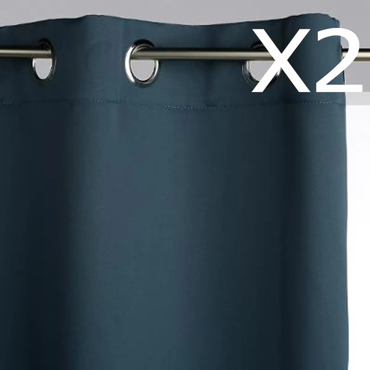 Lot de 2 rideaux occultants - Polyester - 135x240 cm - Bleu orage - 8 œillets