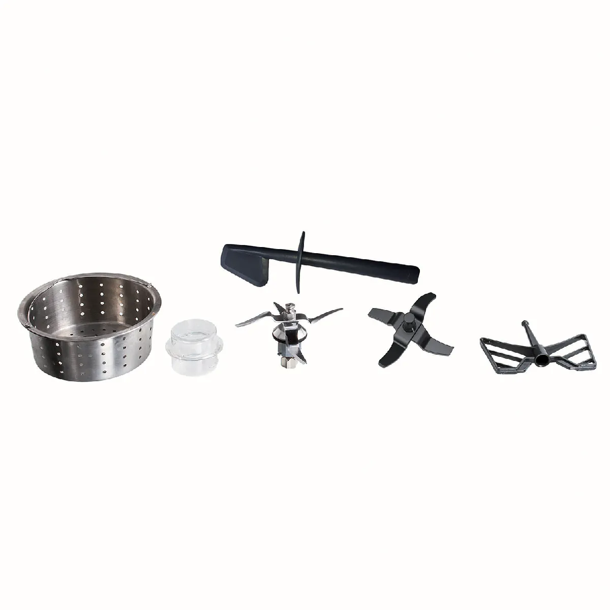 Sont fournis : fouet, plateau vapeur à 2 étages avec couvercle, panier cuisson en acier inoxydable, spatule mélangeur et livre de recettes.
