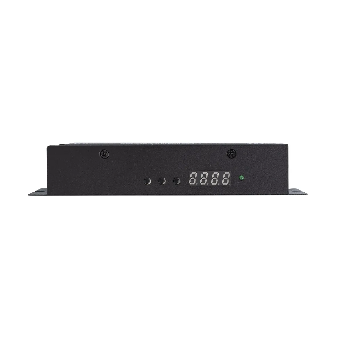 La gestion de vos éclairages LED gagne en fiabilité grâce à ce contrôleur DMX512 à 4 canaux fixes RGBW, idéal pour piloter séparément les couleurs rouge, vert, bleu et blanc. Le branchement s'effectue simplement via l'entrée RJ-45 DMX et les sorties V+, R, G, B, W, ce qui facilite l'intégration dans une ligne DMX existante. L'attribution d'adresse se fait à l'aide des boutons latéraux, permettant un réglage rapide du canal DMX et une adaptation immédiate à la scène ou à l'environnement. Chaque canal fournit un courant de sortie de 4 A, assurant une réponse stable sur des rubans et modules LED compatibles.