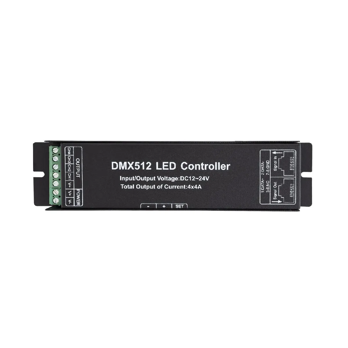 Contrôleur DMX pour rubans LED RGBW - 4 sorties 4A - Entrée DMX RJ45 - Utilisation intérieure - Chaînage possible - Réglage d’adresse par boutons