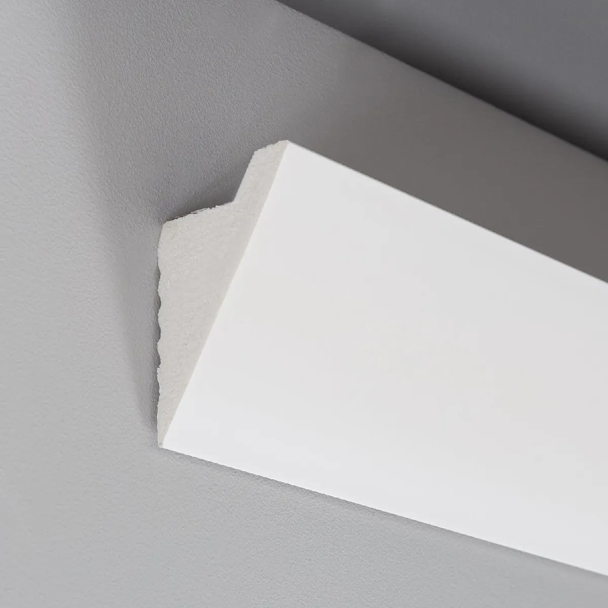 Cette moulure permet une installation rapide et peinture sa surface. Elle peut être coupée à l'aide d'une scie à main ou scie sauteuse. Légère, elle maintient l'uniformité du produit, très résistante, elle ne peut pas être pliée. Pour son installation, il suffit de disposer d'un adhésif de type Polymer.