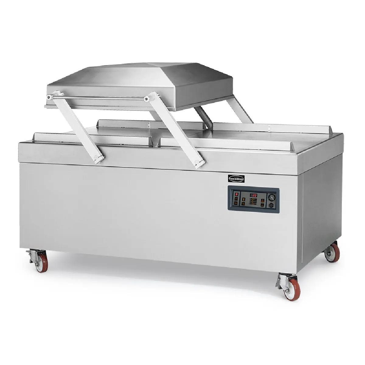 Machine sous vide professionnelle, modèle Prime 285, sur roulettes. Elle possède deux barres de soudure de 840 mm. Temps de cycle (sec.): 10-30Capacité pompe à vide m3 /h: 300 Longueur de la barre de soudure (mm): 2x 840 Dimensions : L 1980 x P 1230 x H 1180 mmDimensions de la chambre : L 840 x P 830 x H 255 mmMarque : Combisteel Tension (Volt): 400 Fréquence de tension (Hz): 50 Puissance totale (kW): 7 - 9 Poids net (kg): 685.