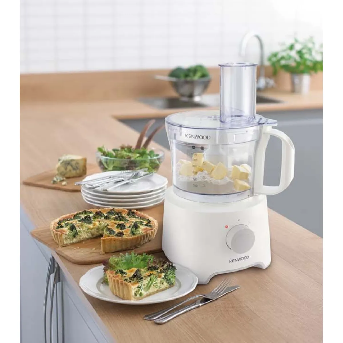 robot multifonction 2.1l 800w blanc - fdp300wh - Robot multifonction Multipro compact Kenwood FDP300WH d?une capacité totale de 2,1L. Il trouvera facilement sa place sur le plan de travail des cuisines les plus petites. Pour cuisiner en toute simplicité, il est doté de 2 vitesses et d?une touche Pulse. Sa base est plus petite qu?une assiette à dessert. Il peut cependant réaliser jusqu?à 1 litre de soupe, 1kg de gâteau mousseline, 1 pâte à tarte de 250g ou encore 400g de viande hachée. Disque pour râper/émincer gros : Ce disque réversible en acier inoxydable permet de râper et émincer légumes, fromages ou fruits. La taille de la coupe est de 4mm, parfaite pour les gratins, les tians, les tartes ou les poêlés de légumes. Emulsionneur : Cet accessoire permet d?émulsionner les blancs d?oeufs et la crème pour éaliser chantilly, soufflés, iles flottantes?. - Type : Robot multifonction.