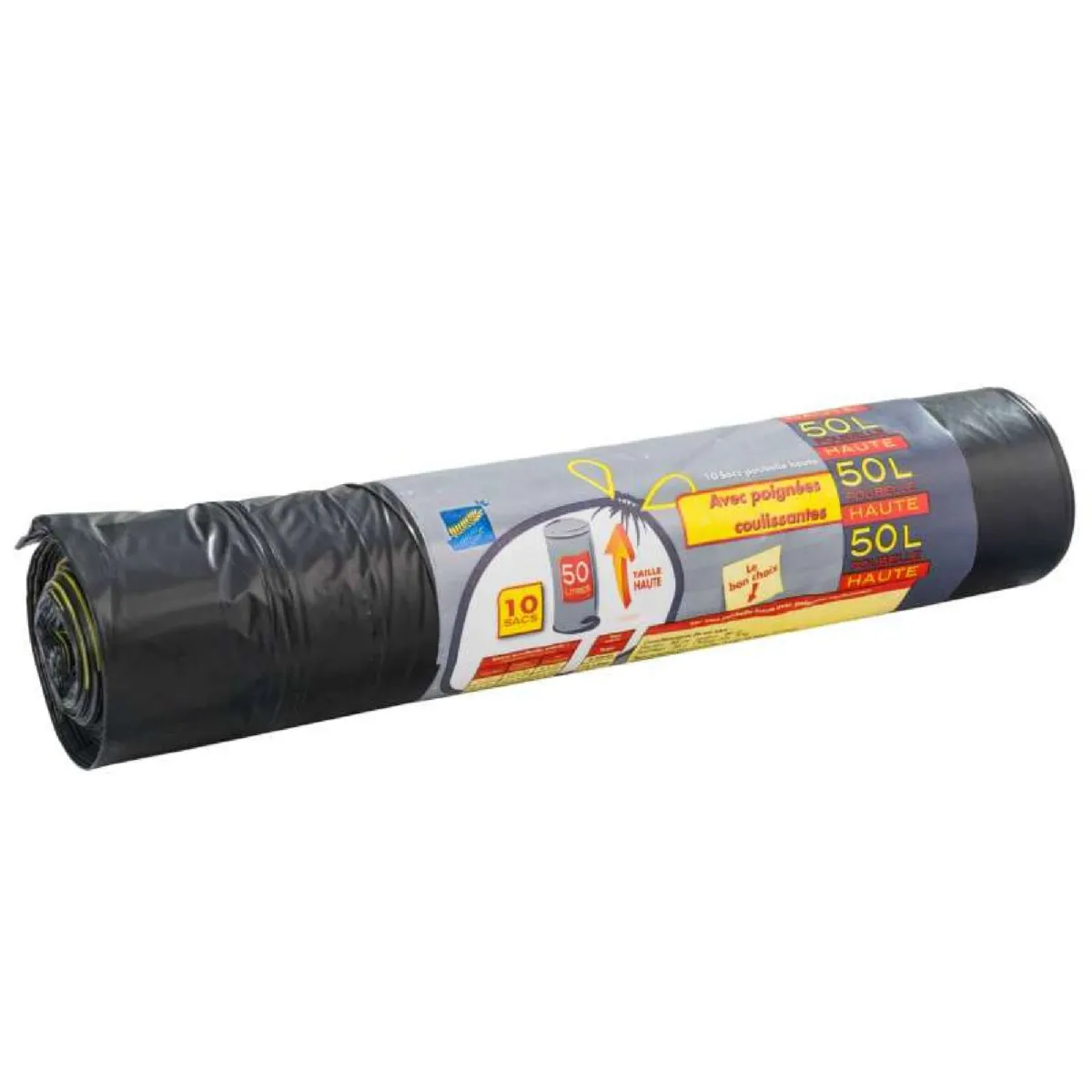 Sac poubelle - Ouverture/fermeture facile - 50 L - Ruban coulissant - Polyéthylène