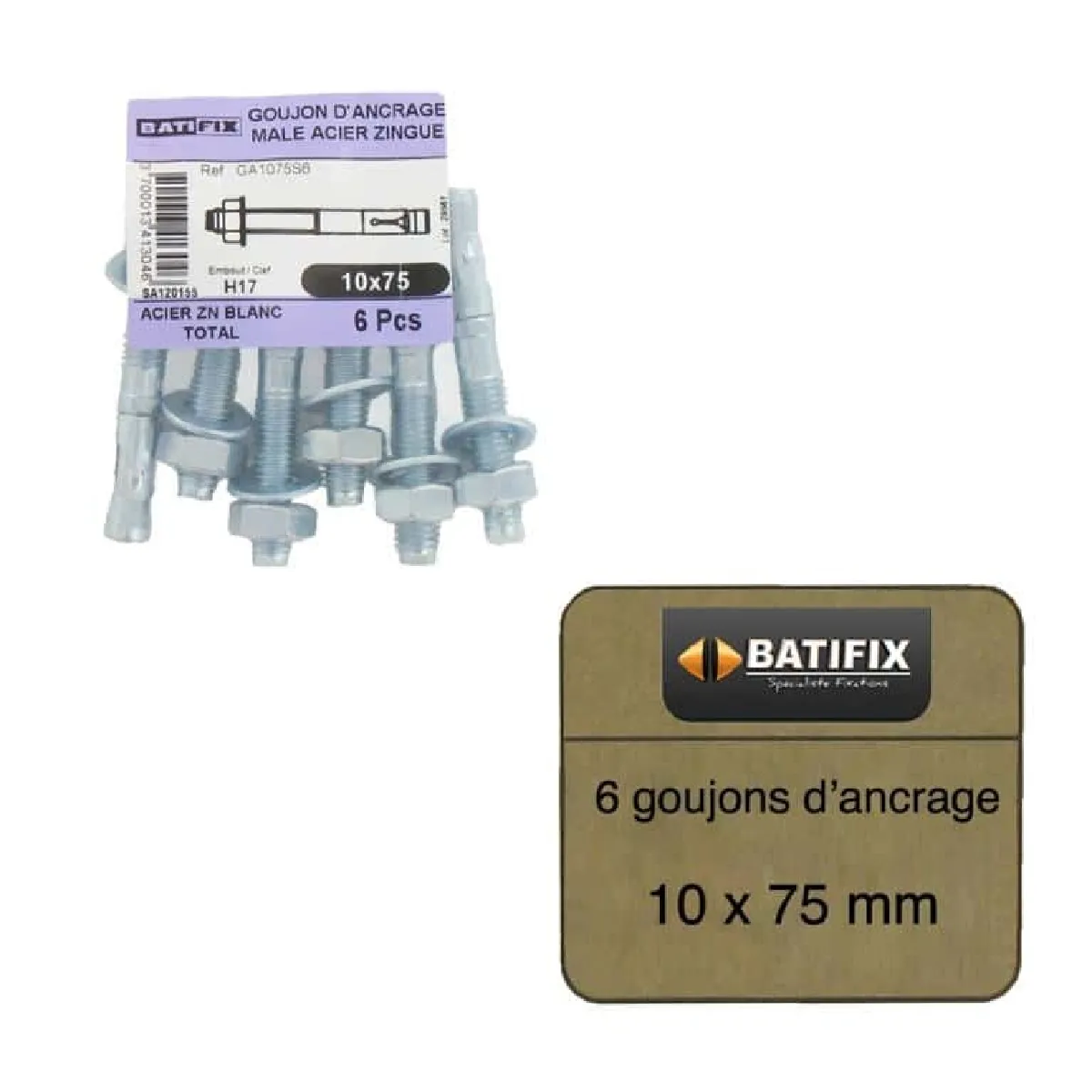 Batifix Goujons d’ancrage H17 béton - 10 x 75 mm, pack de 6 |