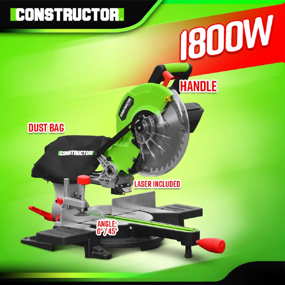 Cette scie à onglets radiale 1800 W de la marque Constructor, composée d'une lame de 254 mm de diamètre (36 dents), est idéale pour la découpe du bois, de panneaux MDF,... Grâce à un système de coulisse à double barre, elle dispose d'une capacité de coupe étendue et d'une haute précision.
