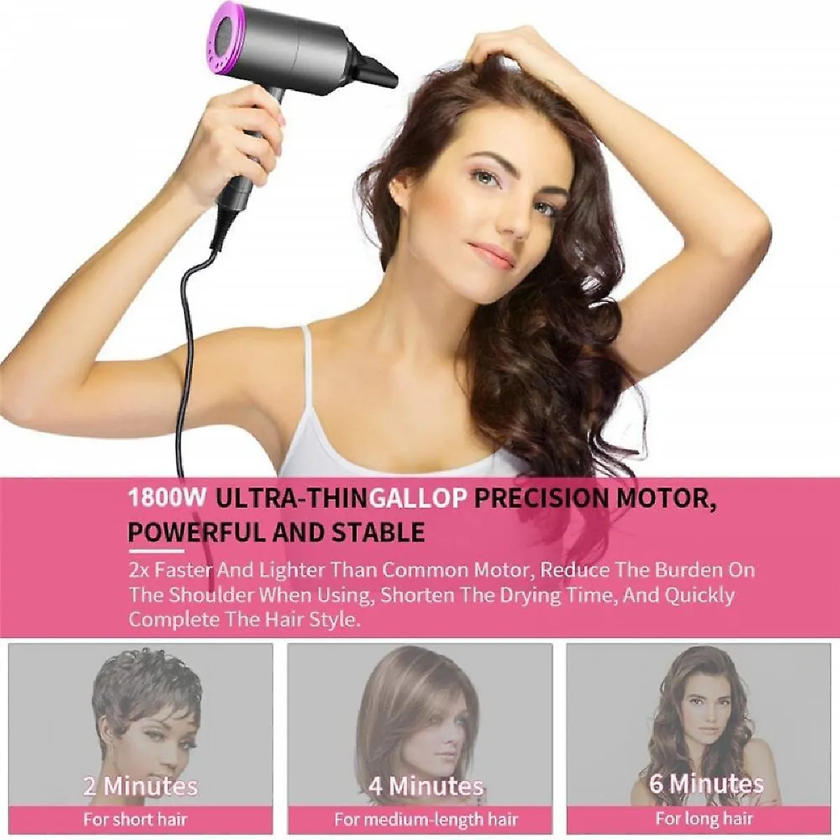 - Type : Sèche-cheveux professionnel, filaire