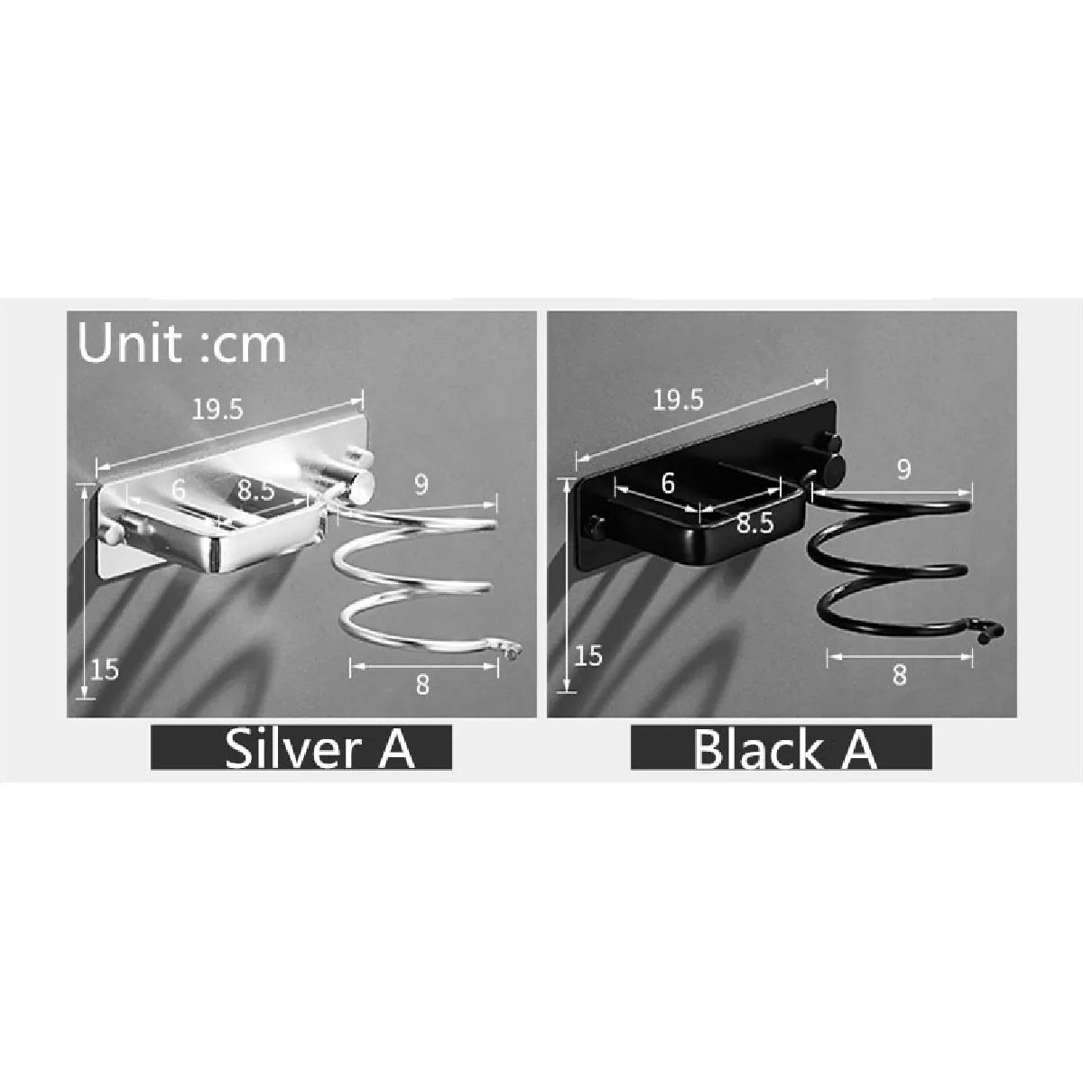 Support mural de sèche-cheveux pour salle de bain - Aluminium antirouille - Rangement pour lisseur et accessoires - Fixation murale robuste