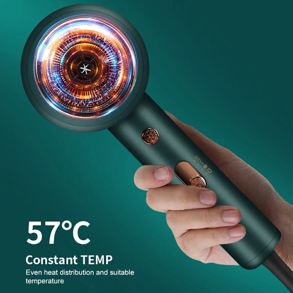 Avec un poids d'environ 0,5 kg, il reste maniable lors de séances de séchage plus longues. La couleur verte apporte une touche distinctive dans la salle de bain ou l'espace de coiffage. L'alimentation filaire garantit une puissance régulière, et le diffuseur accompagne les coiffages texturés sans compromettre la forme des boucles. L'ensemble vise un usage fiable pour la maison comme pour des contextes de travail exigeant de la constance.