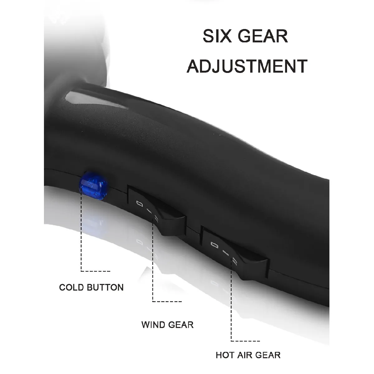 Sèche-cheveux classique avec diffuseur - Moteur AC 2000 W - Ionique - 6 vitesses - 3 niveaux de chaleur - Bouton air froid - Câble 1,3 m
