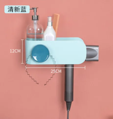Conçue en plastique ABS, la structure résiste à l'eau et à l'humidité, favorable aux environnements exposés aux éclaboussures. Cette caractéristique facilite un entretien régulier avec un simple essuyage, limitant l'accumulation d'eau et de poussière. Le coloris bleu s'intègre à divers styles de salle de bain tout en aidant à repérer l'emplacement de l'appareil. La géométrie du rack favorise une prise en main rapide du sèche-cheveux, utile pour les routines matinales ou pour partager l'espace entre plusieurs utilisateurs.