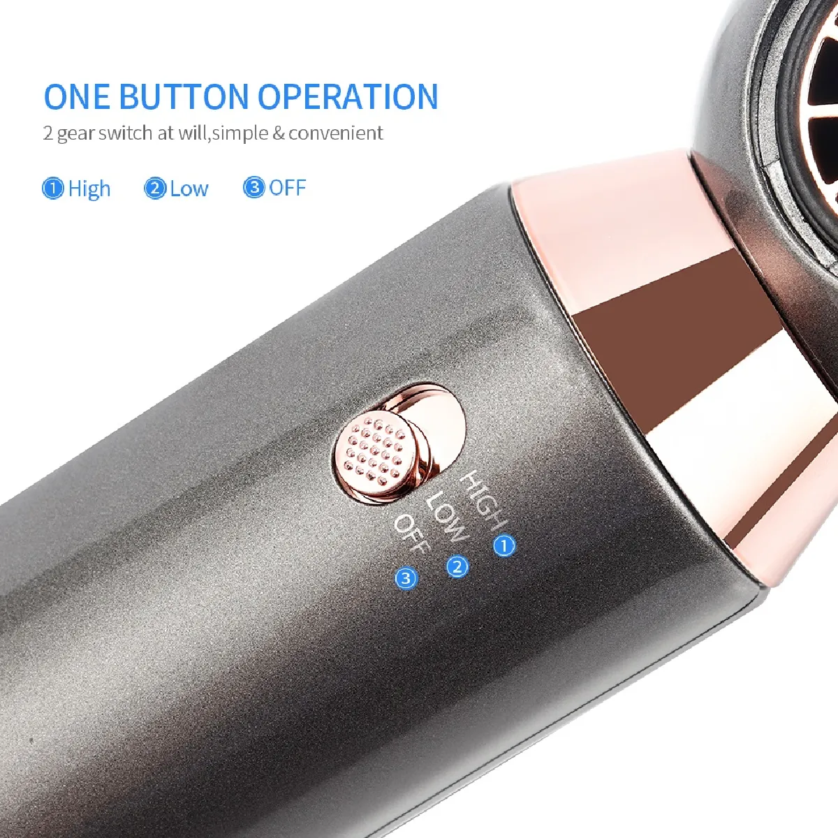 Il dispose de 2 vitesses avec une température chaude constante, pour ajuster le débit selon les besoins.
