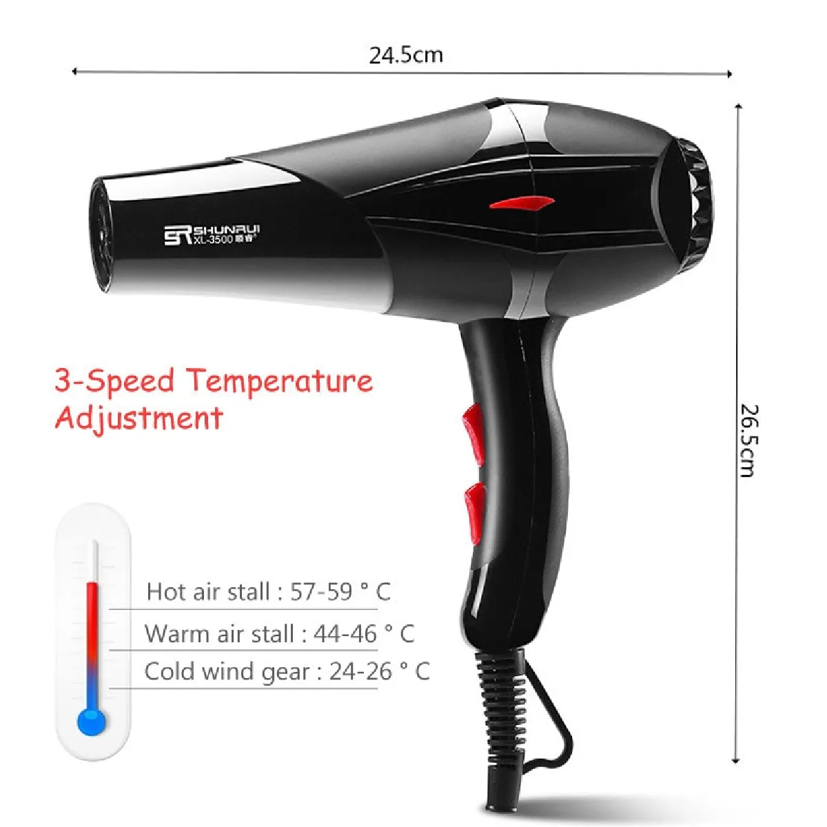 La forte puissance de 3200 W délivre un flux d'air énergique pour un séchage rapide et constant, adapté aux sessions prolongées. Avec ses 2 vitesses et 5 réglages de température, il s'adapte aux épaisseurs et longueurs variées. Le boîtier de couleur noire est en matériau de bonne qualité et la couverture avant détachable facilite l'accès pour l'entretien. Conçu pour une alimentation 240 V, ce modèle filaire pèse 0,5 kg pour une manipulation stable. L'interrupteur annoncé comme de qualité vise une utilisation régulière dans un cadre de salon ou à domicile, avec air chaud et air froid pour finaliser le coiffage. La couche interne mentionne un matériau résistant aux flammes à fil ondulé.