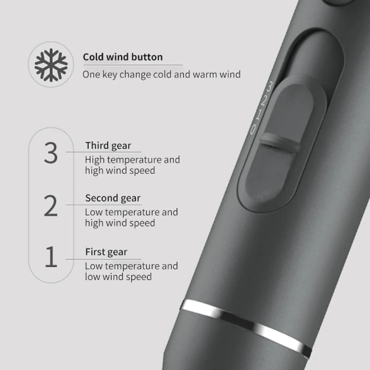 - 3 niveaux de chaleur et 2 vitesses distinctes