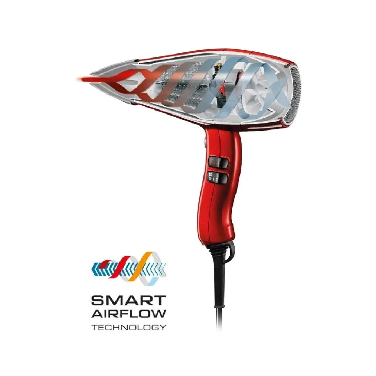 Sèche-cheveux professionnel ionique - Moteur AC long life - 2 vitesses - Air froid - Technologie Smart Airflow - Câble 3 m Rotocord - Filtre amovible - 2 concentrateurs + diffuseur