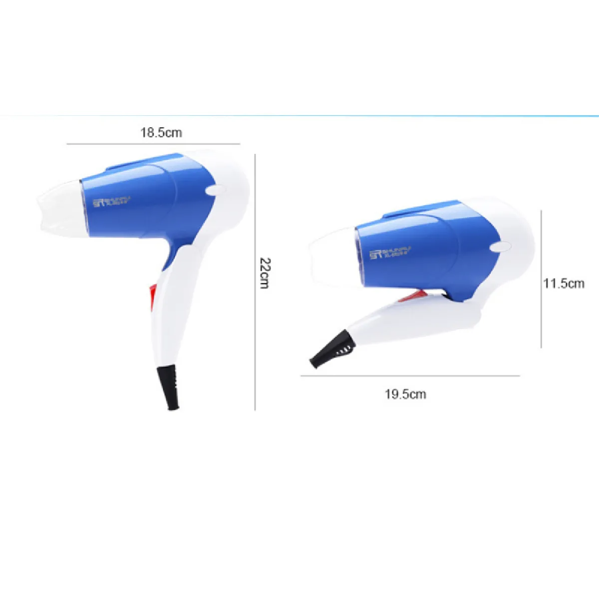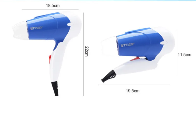 Sèche-cheveux de voyage pliable - 1300 W - 2 vitesses - faible bruit - poignée ergonomique