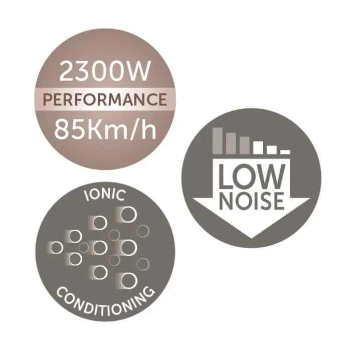Avec 2300 W, l'appareil délivre un flux d'air soutenu tout en conservant une stabilité thermique pour un coiffage plus uniforme. La combinaison de la céramique et des ions aide à réduire les frisottis et favorise un rendu lisse. Les 2 vitesses gèrent l'intensité du souffle, utiles pour passer d'un séchage rapide à un travail plus minutieux sur les mèches. Les 3 niveaux de chaleur permettent d'adapter la température à la sensibilité des cheveux, du plus épais au plus délicat, pour équilibrer temps de séchage et confort d'utilisation.