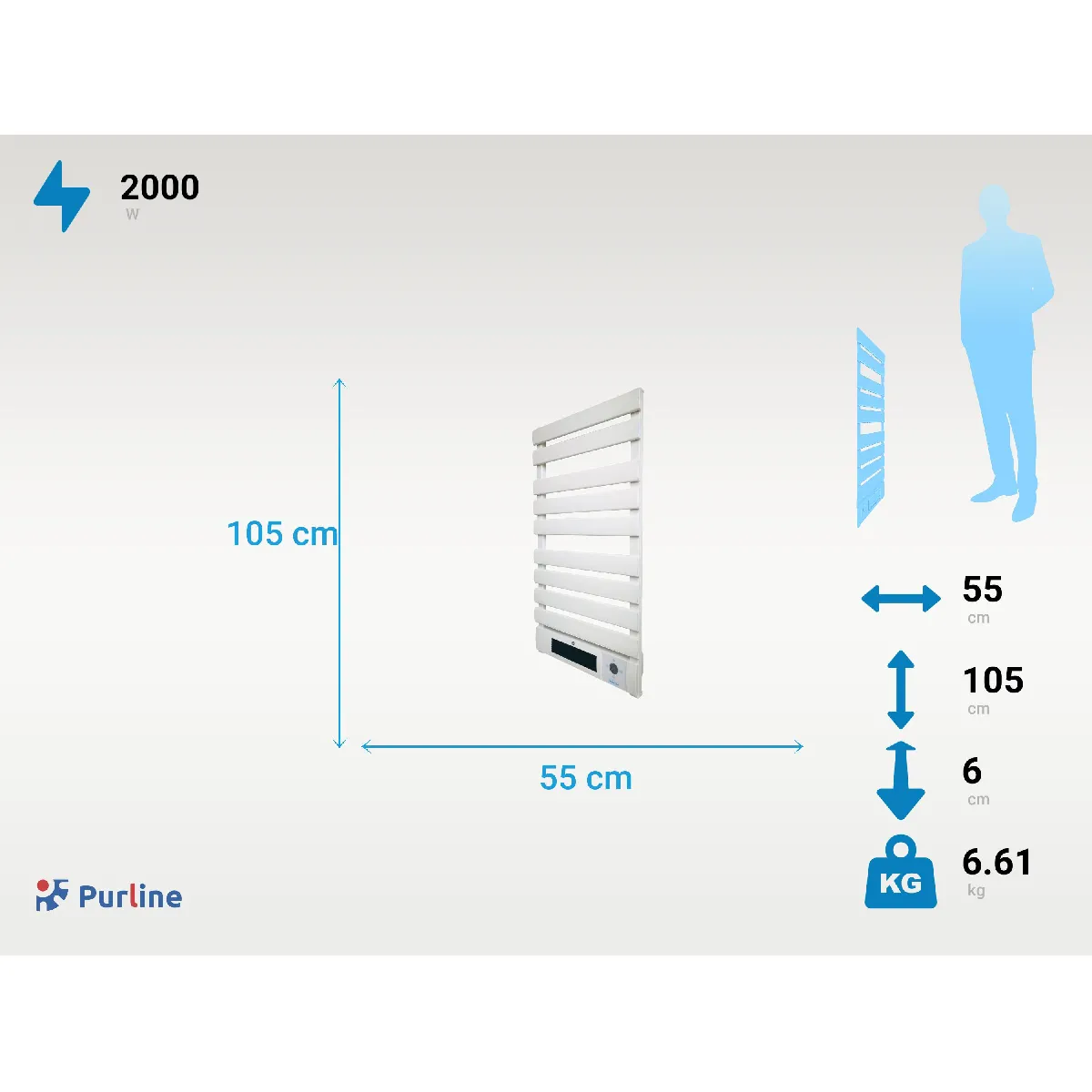 Purline vous propose une gamme complète de sèche-serviettes électriques pour faire de votre maison et de votre salle de bains un endroit enviable. Fabriqué en aluminium de haute qualité et doté d'une protection IP24 contre les éclaboussures, sa technologie ultra-silencieuse à haute puissance et faible consommation permet de chauffer la pièce en quelques secondes seulement, sans avoir besoin d'huile ou d'eau à l'intérieur.