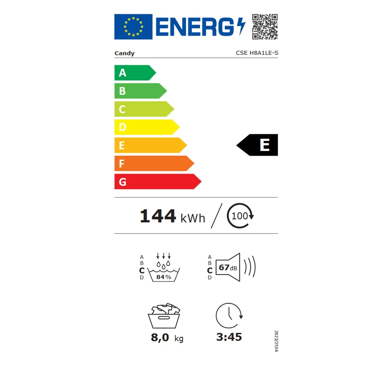 Le principe de la pompe à chaleur à condensation avec contrôle électronique optimise la température et réduit la consommation. La classe E et une consommation en veille de 0.4 W contribuent à un usage mesuré au quotidien. Le tambour de 118 l et la double rotation participent à une diffusion homogène de la chaleur pour un résultat régulier. Le taux de condensation pondéré est de 84 %, avec une classe B, pour limiter l'humidité résiduelle dans la pièce. Le niveau sonore annoncé est de 67 dB, adapté à un fonctionnement prolongé pendant les cycles longs.