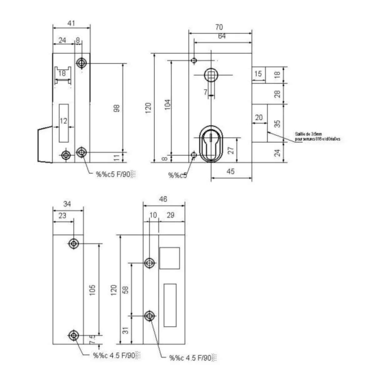 - Coffre en acier noir 70 x 120 mm, entraxe 70 mm