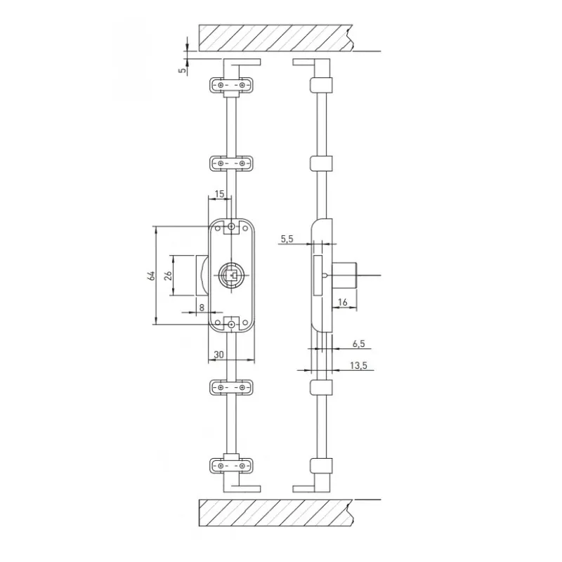 Serrure espagnolette Uno pour porte - Sans cylindre ni tringle - 1 point - Acier - Axe 25 mm - Entraxe 25 mm - Cylindre 1 entrée de clé - Norme EN 12209